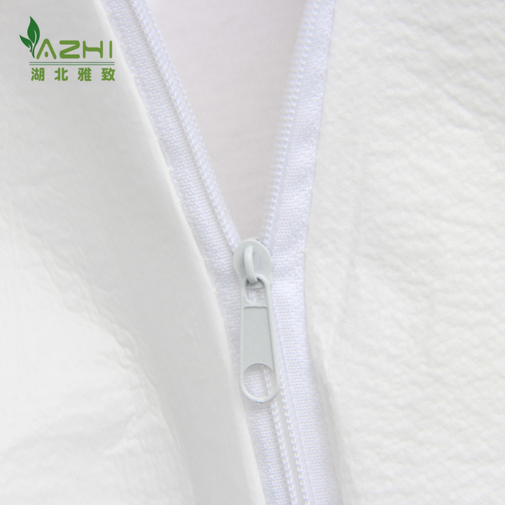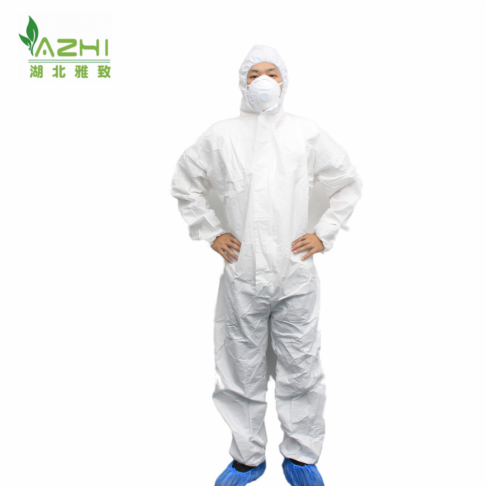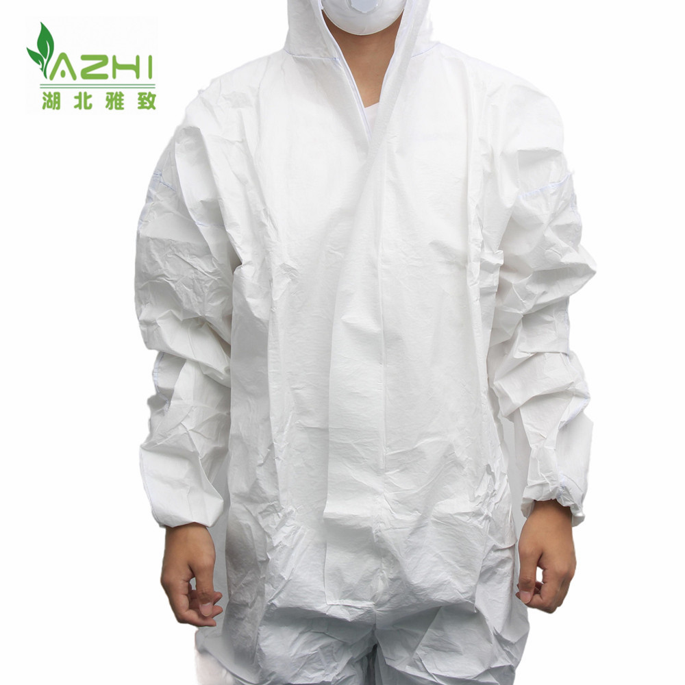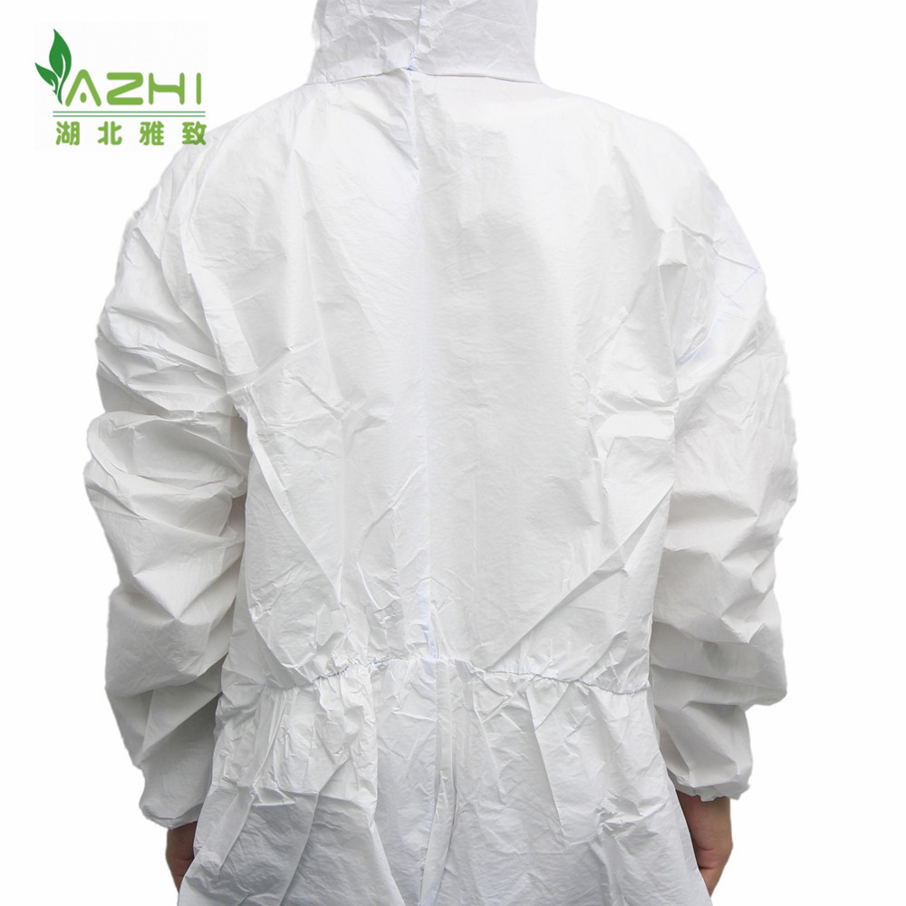 款式:透气膜防护服,胸前拉链,头上戴帽,脚上无靴套